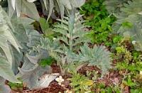 まわりの大きな葉はカールドンです。カールドンのほうがアーティチョークより大きい葉です。