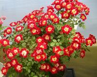 ミニチュアローズ リトル・アーチスト 2012-5-14 « 画像 » 2012年バラとガーデニングショウ見学のときの四季咲き半八重小輪のミニチュアローズ リトル・アーチスト。 盆栽仕立てになっていました。 2012-5-14 « 画像 » リトル・アーチストはビロードのような赤の花弁で、裏側は白です。 2012-5-14 « 画像 »