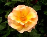 バラ ラ・パリジェンヌ データ 半つる性(シュラブ・ローズ) 四季咲き 大輪 抱え咲き オレンジとイエローの複色 中香 フランスのデルバール社