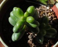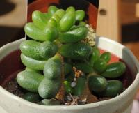 ガッチリとした茎にころころした卵のような葉が付いている緑亀の卵。名前につられてゲット。