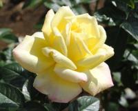 ピースの花はクリームイエローに淡いピンクの覆輪があります。