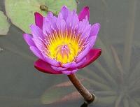 こちらの花は外側の花片が濃い赤紫がかっていて、内側は薄い紫のスイレンです。
