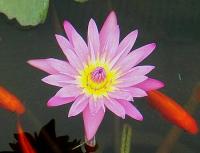 ピンクのスイレンの花。耐寒性のスイレンあるいは熱帯性のスイレン?