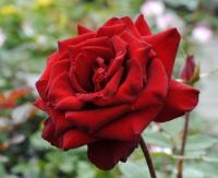 黒みがかった赤花でビロードのような質感のシュワルツ マドンナ。