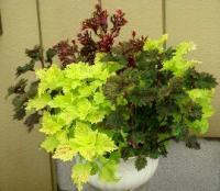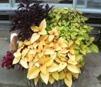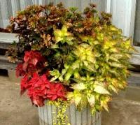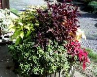 約2週間後の寄せ植えです。コリウスの生長は早く、少し紅葉がかっていますね。