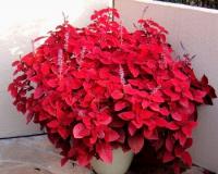 知人のお店で見た赤いコリウス数本を寄せて植えてあった小さな鉢があった。