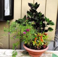 寄せ植えはコンテナも重要ですね。我が家の場合、予算の関係上ほとんど安い鉢ですが、おしゃれな鉢だったら植物が喜ぶだろうな・・・