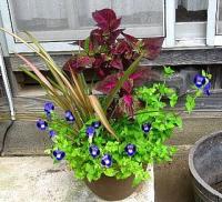 コリウス「マギラ」、ニューサイラン「ジェスター」、夏すみれ(トレニア)「パープルムーン」
