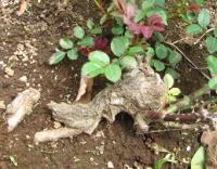 どうしてこうなったかは覚えていませんが、おそらく草取りをしていてバックして倒してしまったのでしょう。