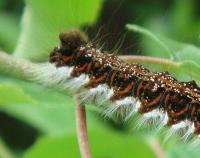 シラカバの小枝を歩いていました。最近になって外国から入ってきた毛虫かも・・・と思い始めたところでした。
