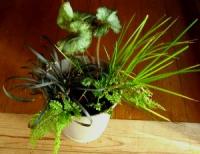 レックスベコニアの寄せ植え ツデー、シルバードラゴンかな?、アイビー、プレクトランサス・ヌンムラリウスなど