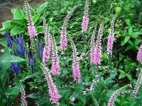 ベロニカ・ロイヤルキャンディ、手前の大きな葉がホスタです。
