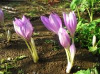球根は径 3 † 5cm の卵形で、 9 月から 10 月に花茎を 15cm ほど伸ばし、アヤメ科のサフランに似た花をつける。