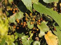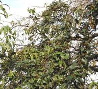 イチジクの隣にある枝垂れハナモモには天辺にまで、ヘクソカズラのつるが登ってしまいました。