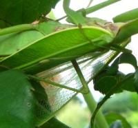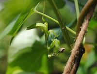 グリーンカーテンのアサガオにいました。この姿からハラビロカマキリと思います。