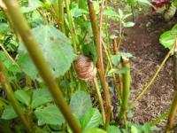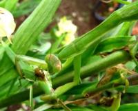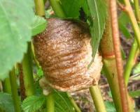 モロヘイヤに産み付けたオオカマキリの卵嚢(らんのう)