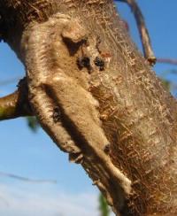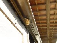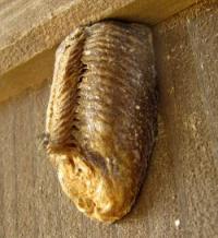 軒下に産み付けてあったハラビロカマキリの卵嚢(らんのう)。