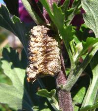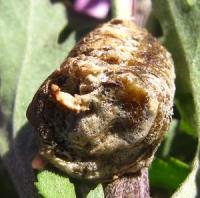 菊のところにあったハラビロカマキリの卵嚢(らんのう)