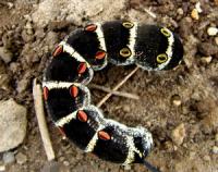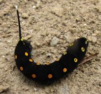 おそらくすぐに葉っぱを食い尽くしてしまうのか、よく地面を這って次の食草に移動している。食草はニオイでわかるのかな? それとも何か別なものでわかるのか?