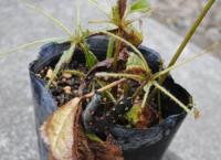 カラジューム(サトイモ科)もこの通りです。カラジュームは葉っぱを鑑賞するものなのに台無しになってしまいます。