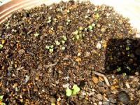 もう待ちきれなくてそこへミニチンゲンサイの種をまいてしまいました。ミニチンゲンサイの芽はすぐに出てきてきました。