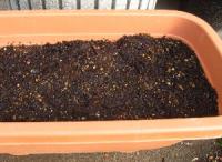 花のプランターに種をまく。青く小さなあやめ雪の種。