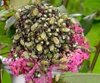 初夏†夏にかけて灰色カビ病や炭ソ病にかかりやすいので、予防がてらに定期的にベンレート、ダイセン水和剤などの殺菌剤を散布します。