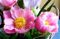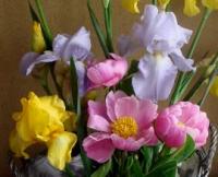 アシナガコガネの被害に遭わないうちに摘んだシャクヤクとジャーマンアイリス