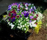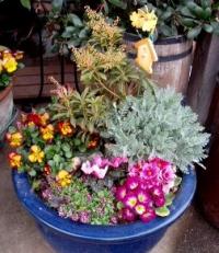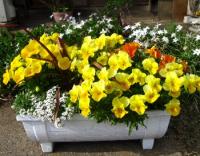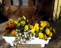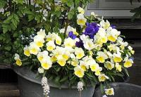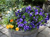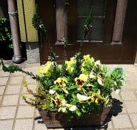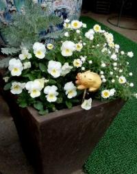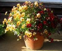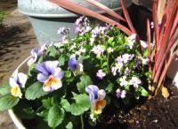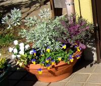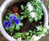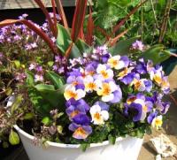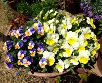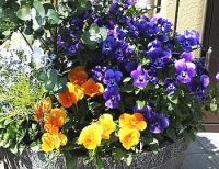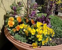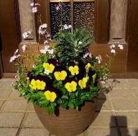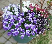 上の寄せ植えから木百香(モクビャッコウ)を外したもので、パンジー・ビオラがワサワサとボリュームいっぱいになっています。