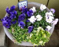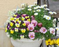パンジー、シルバーレース、ハナカンザシの寄せ植え