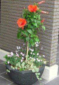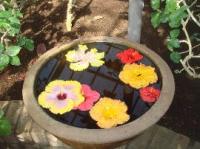 水鉢の中のハイビスカス・・・ 夏らしい趣があります。