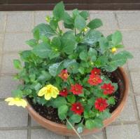 小さなポリポットのダリアを寄せ植えしてから毎日とてもきれいに咲いていました。