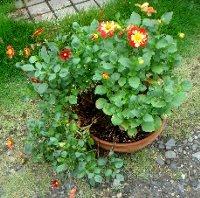 盛りの画像はありませんが、このダリアの寄せ植えは3色あって次から次へと花が咲いていました。