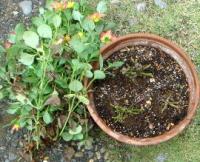 上はまだ蕾もあるし、倒れなければ下の葉をきれいに整理すればまだもう少しこのままおいても良かったかも・・・ 2009-7-22