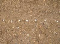 そこへミニニンジンの種を1†2cm間隔で筋まきにします。種を軽く押さえて落ち着かせ、軽く土を被せます。