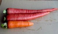 近所で栽培した金時人参(キントキニンジン)と我が家の五寸ニンジン。