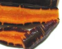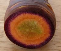 外側が紫色、中心部はオレンジ色のニンジン。紫色の部分はアントシアニンを多く含んでいます。