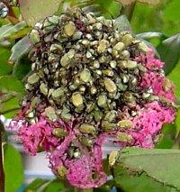 チッ素分が多いと葉ばかり育ち、花芽が付きにくくなります。
