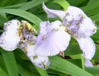 芝の産地のこの辺ではアシナガコガネムシが大発生するのと、ジャーマンアイリスの開花と重なります。淡い色の花は特に被害がハンパではないのです。