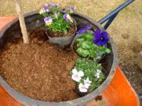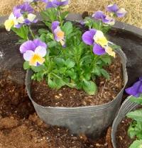 購入のパンジーも2回りほど大きいポットに植え替えます。