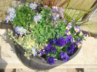 パンジー・ビオラのほかにブルーデージー2種、オダマキ、セキショウ、
