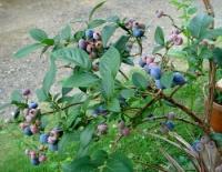 昨年は畑から掘り起こして1本だけ花壇に植えました。庭に出てすぐ摘まめるので大変良かったのです。畑には10本ほどあり、たくさん実るのですが、鳥さんのほうが朝早く食べてしまうので食べられるのは1/3†1/4になってしまいます。本格的にブルーベリーを栽培していれば、防鳥対策をするのですが、少しなので網など部分的にかぶせたりするぐらいなのです。