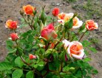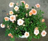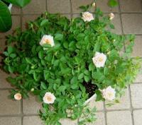 四季咲きのミニバラは花が終わるたびに剪定し、固形の醗酵油カスもしくは化成肥料を少量パラパラとまいておきます。チッソ過多になるとうどんこ病が発生しやすくなります。