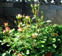 ミニバラの花が終わると直ちに枝を切り詰めると、またわき芽が出て生長します。