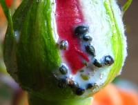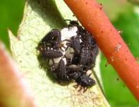 アブラムシはテントウムシやヒラタアブがかなりいるので、殺虫剤は使いません。でもたまに現れないときもあるのです。そんな時は手でつぶしてしまいます。
