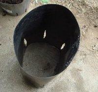 スリット入りの鉢は近頃見かけますが、根の発育が通常の鉢のものより独特の張り方で良いらしいのです。その真似事でそうしたわけです。