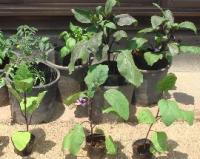 2008年栽培の野菜の苗 ナスの苗は早く購入したので大きくなっている。
