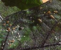おまけに小さな虫がビッシリ・・これはアブラムシ? ハダニ? チャノホコリダニ?