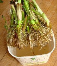 春は根の付いたセリやミツバが並びます。それらを料理に使ったあとに残った根を利用します。