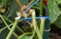 ↑失敗例 これは黄色のカラーピーマンですが、支柱をきちんとしていなかったのでピーマンの重みで折れてしまいました。